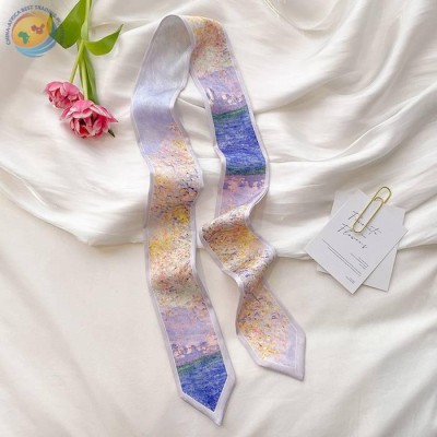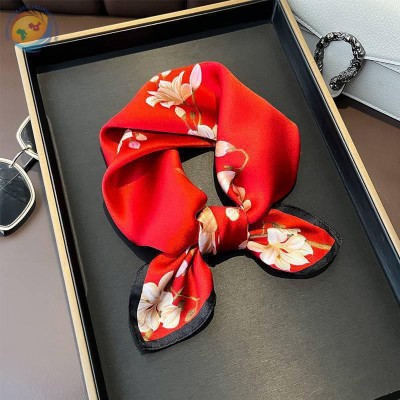韩国春夏季百搭碎花仿真丝小清装饰小围巾