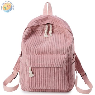 青少年女生灯芯绒灰色软织物双肩包学校包灯芯绒双肩包
