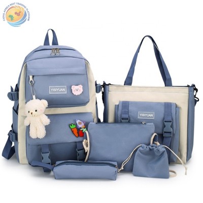 Hot Selling 5 Piece Set Cute School Book Bags Trend School Bag With Pencil Case Teenagers Middle Book Bagpack Backpack Canvas