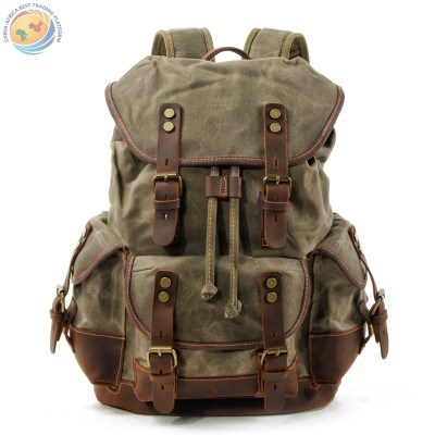 9508 Large Capacity Leather Canvas Backpacks For Men School Bags Vintage Waterproof Daypack High Quality Laptop Backpack Bag