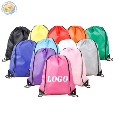 多色广告210d便携式可重复使用户外可回收平原运动聚酯拉绳双肩包定制标志