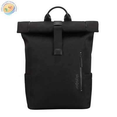 供应商新设计师黑色城市卷顶防水背包男女通勤学生背包