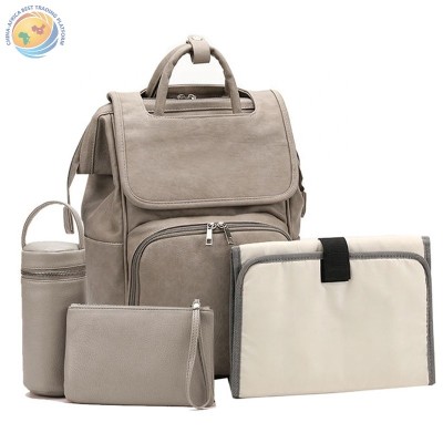 大容量时尚Pu皮革尿布袋旅行医院妈咪背包婴儿尿布袋更换垫