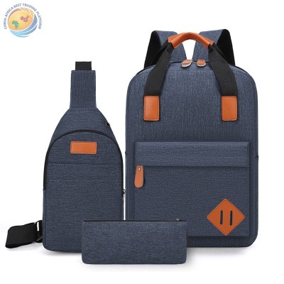 2024新三合一背包套装日本风格笔记本电脑背包书包和胸袋铅笔袋套装