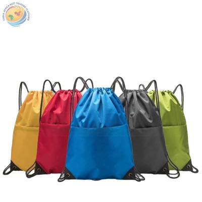 批发定制标志防水聚酯促销健身训练存储拉绳鞋袋运动尼龙拉绳背包
