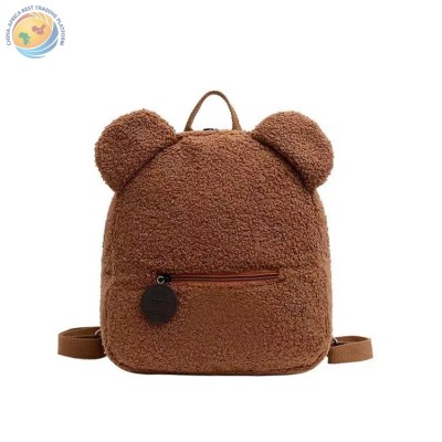 可爱的熊形毛绒背包柔软耐用的聚酯内衬帆布背包与处理学校旅行购物冬季使用