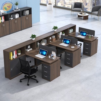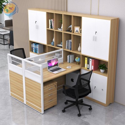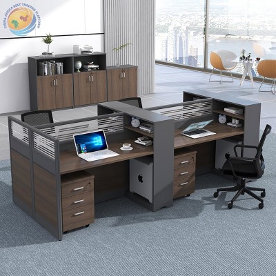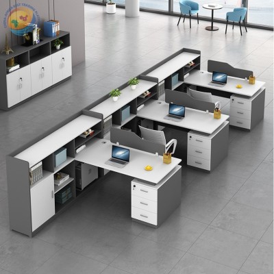 现代简约职员屏风办公桌工位组合四人位员工桌板式隔断卡位带侧柜