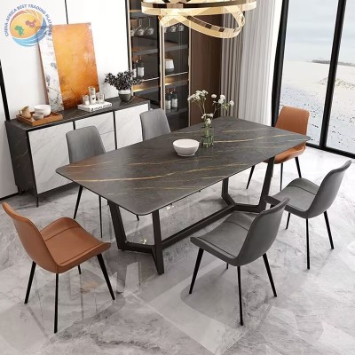 意式极简岩板餐桌组合现代简约小户型家用长方形饭桌北欧餐椅
