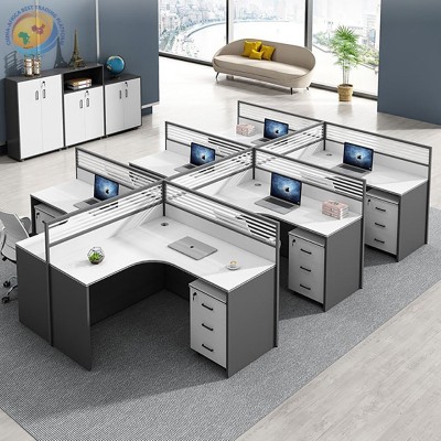 简约屏风办公桌4人位职员办公桌椅组合财务桌工位桌子Desk office