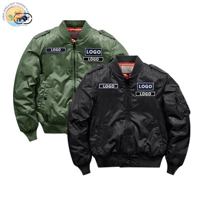 定制Logo man ' S Ma1飞行员夹克户外防水缎面飞行飞行员夹克制造商