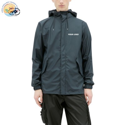 定制Logo户外时尚街头风格男装'S风衣聚酯雨夹克风衣带兜帽