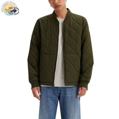 定制新设计男士钻石格子绗缝棉袄男士超轻钻石夹克