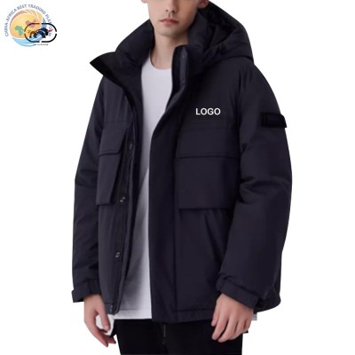 Oem定制徽标冬季羽绒服户外旅行厚男士连帽鸭羽绒服