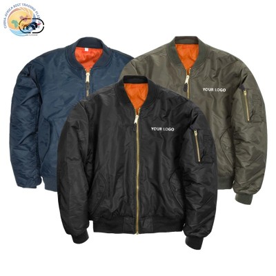 Oem定制设计缎面飞行员夹克定制刺绣户外飞行飞行员夹克男士拉链口袋
