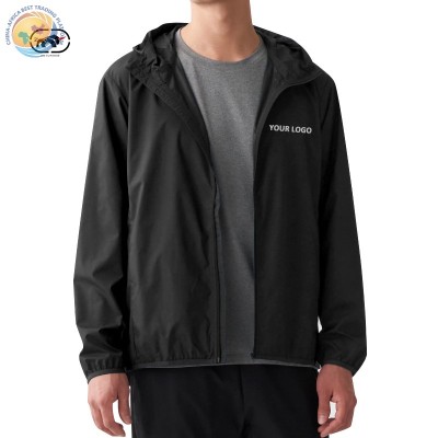 定制带帽拉链聚酯雨夹克户外风衣徒步轻质防水夹克制造商