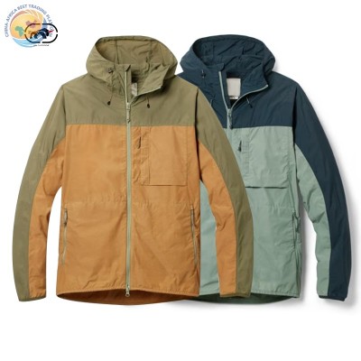 定制标志户外春季夹克带兜帽领薄织物涂层防水风衣