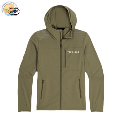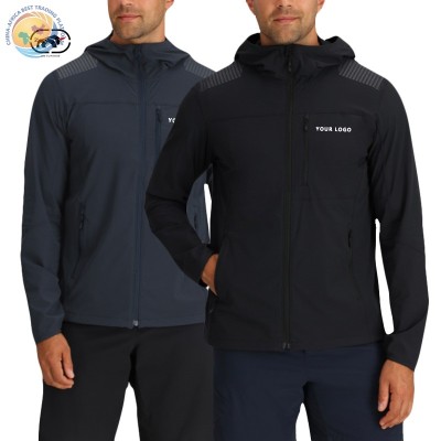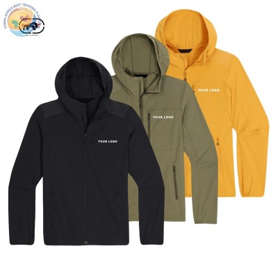 定制标志秋季纯色连帽防水防风衣风衣户外徒步软壳夹克男士