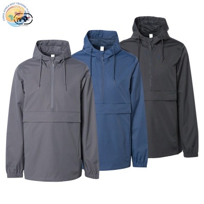 男士春季风衣夹克防水定制街头服饰男士半拉链套头尼龙风衣