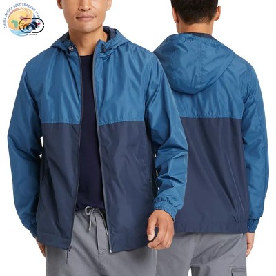 Oem定制春季轻量级男士休闲尼龙风衣夹克与兜帽