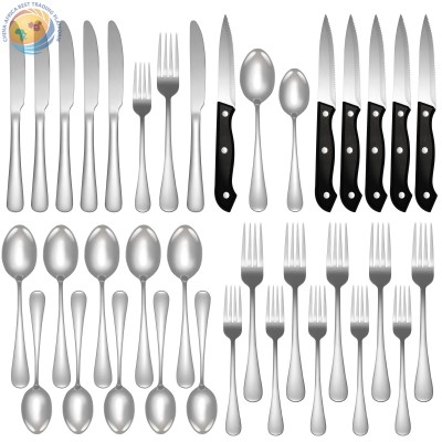 Modern Hotel Restaurant Bulk Knife Spoon Fork Metal Thick Cutlery Black Silverware Stainless Steel Silver Flatware Set