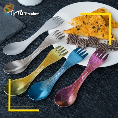 Tito Spork Hiking Travel Cutlery Camping Titanium Spork Customized Ultralight 2 In 1 Outdoor Food Grade Knife For Camping