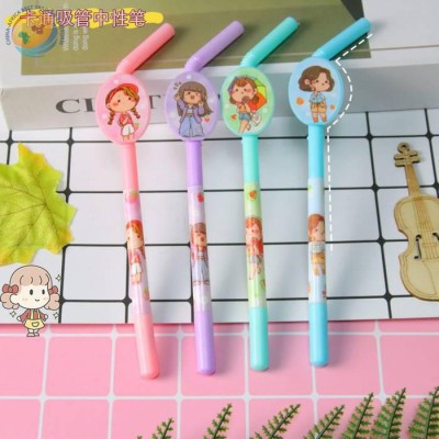 Cute straw shape neutral pen girl heart high appearance level flower film listing pen