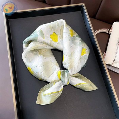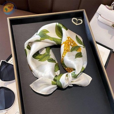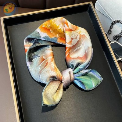 女士新款花卉100%纯桑蚕丝真丝小方巾丝巾