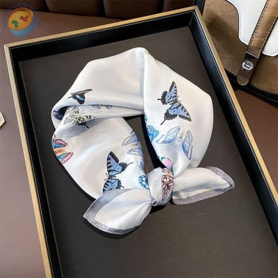 蝴蝶丝绸真丝小方巾女百搭100%桑蚕丝围巾
