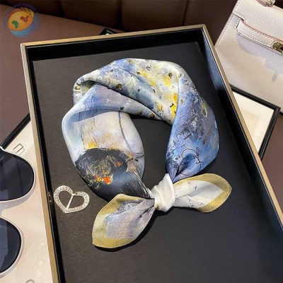 油画风小方巾梵高向日葵复古真丝百搭印花方巾
