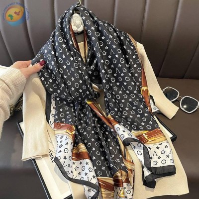 新款丝巾女新丝缎薄款披肩潮牌沙滩巾围巾