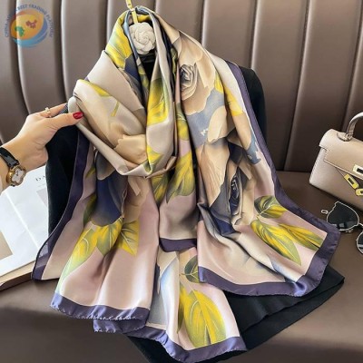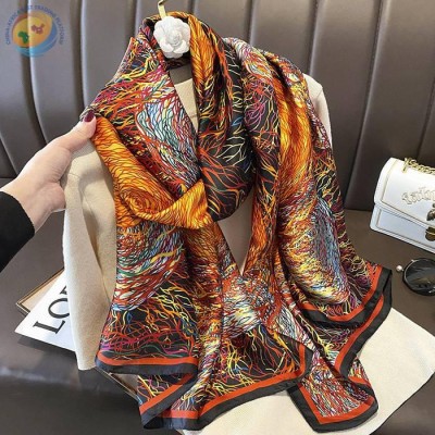 韩版印花仿真丝围巾装饰披肩防晒沙滩巾
