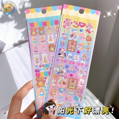 Gooka sticker laser glitter Bear ribbon ribbon bow