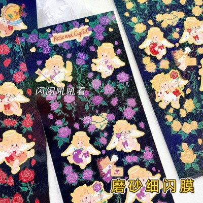 复古玫瑰丘比特细沙镭射闪光贴纸卡通咕盘咕咔咕卡火漆套装贴贴