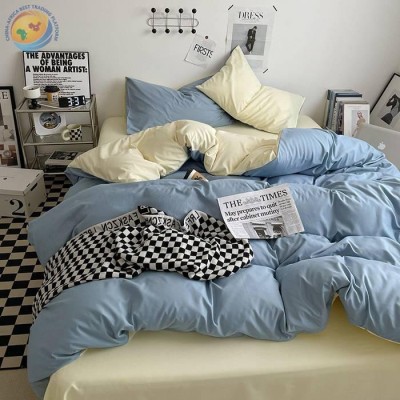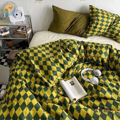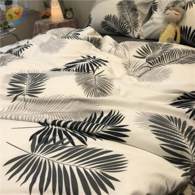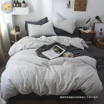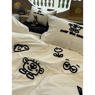 ins Nordic simple style black and white fashion bed set boys four-piece cartoon cute four-piece set of ground wool washed cotton