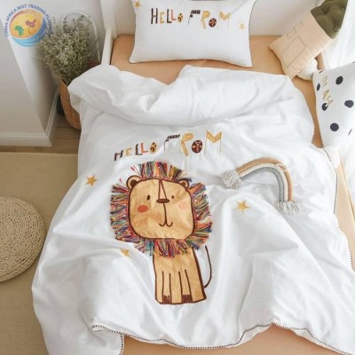 ins Nordic wind 60S Long staple cotton pure cotton Little Lion children kindergarten single bed set students three Piece set
