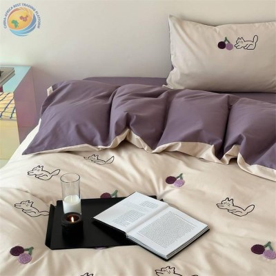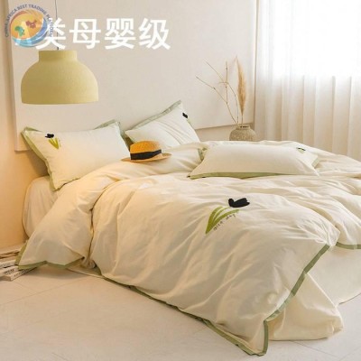 A 80 cotton Xinjiang long staple cotton four-piece cartoon ins embroidery towel embroidered pure cotton bed linen