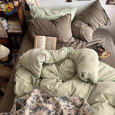 2024 Japanese size foreign trade manufacturer solid color Nordic plain woolen bed cover three-four piece dormitory Amazon