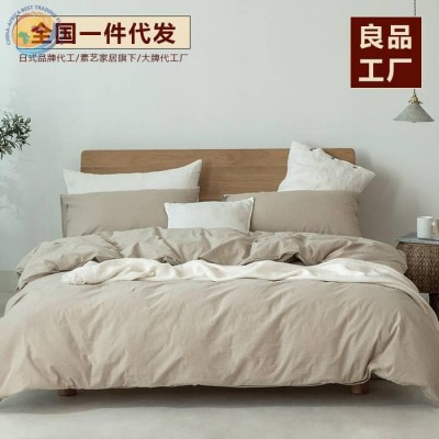 【特价】无印西川床品良品水洗棉四件套纯色套件日式全棉民宿酒店