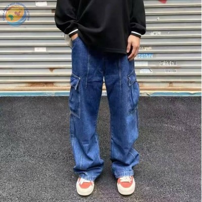 Men's Casual pants Retro fall and winter loose jeans men's wide legs
