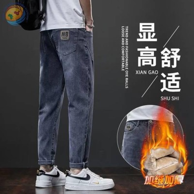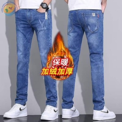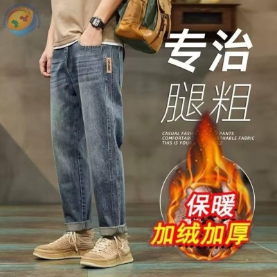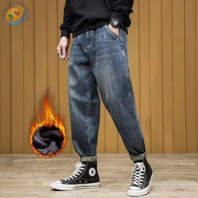 Men's Jeans Vintage Men's straight pants fashion brand fall and winter with cashmere