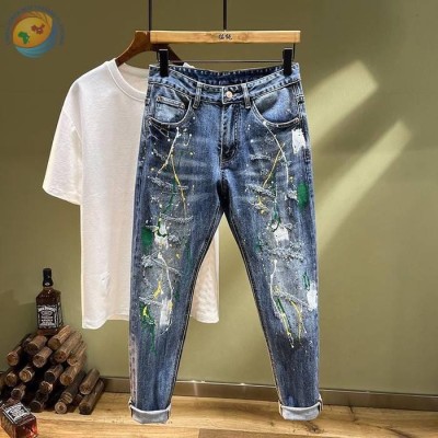 Men's Jeans2023 new fashion brand new slim jeans trend casual pants