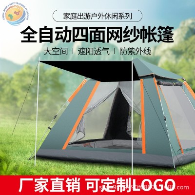 户外野营黑胶折叠全自动3-4人沙滩防晒速开tent厂家批发通风帐篷