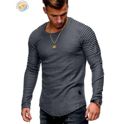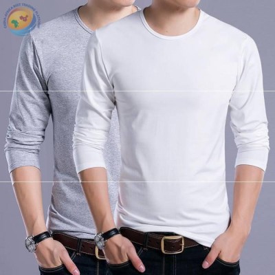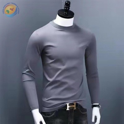 Men's T-Shirt Men's autumn and winter wear loose T-shirt new trend all-in-one Korean version of solid color casual long sleeve