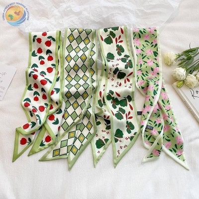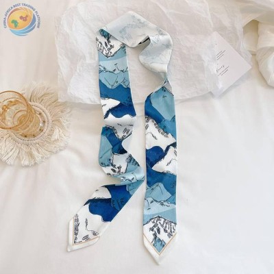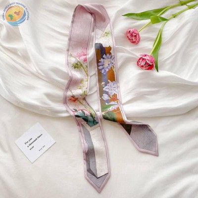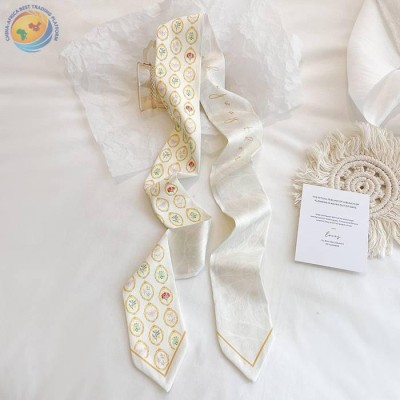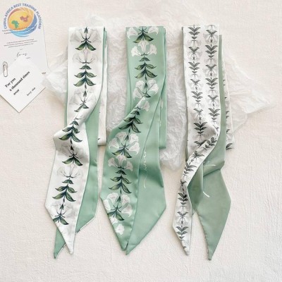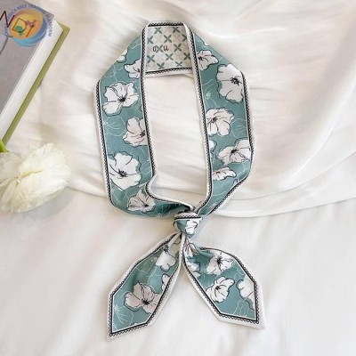 Diagonal scarf women\'s spring and summer long ribbon flower narrow neck support ribbon