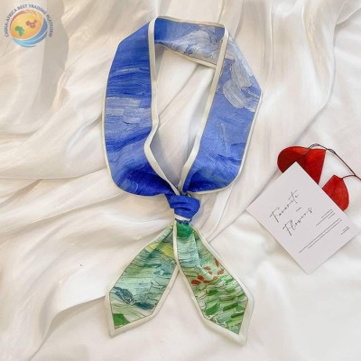 Summer new imitation silk ribbon oil painting style retro small silk scarf