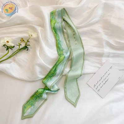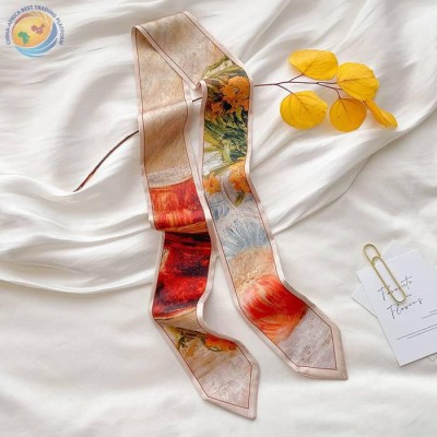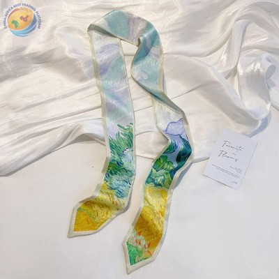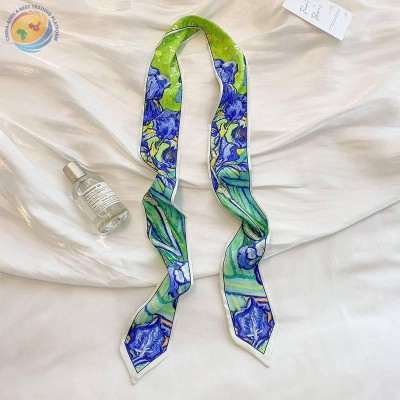Spring and summer new oil painting wind thin narrow long scarf female small ribbon