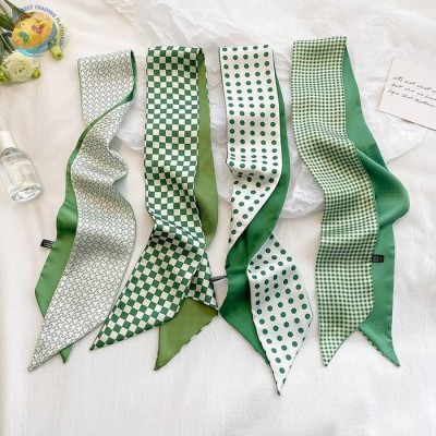 Japanese simple green checkerboard checkered polka dot double satin silk scarf woman