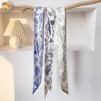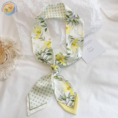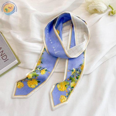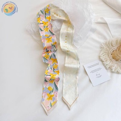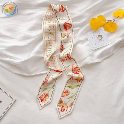 Spring/summer flower print oil streamer long silk scarf for women narrow South Korea