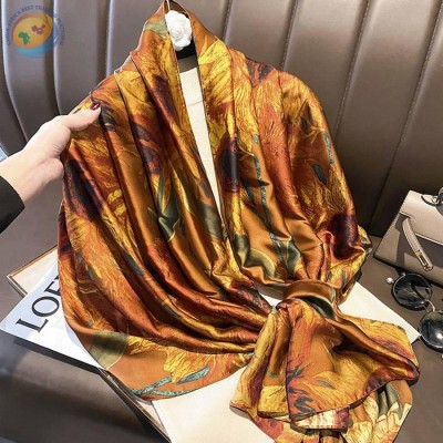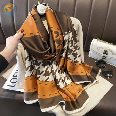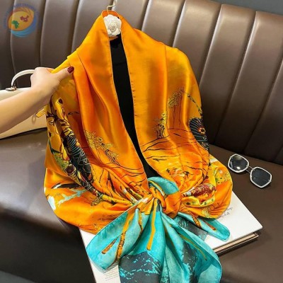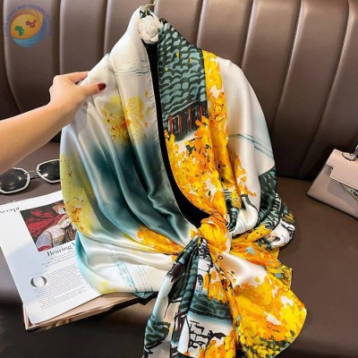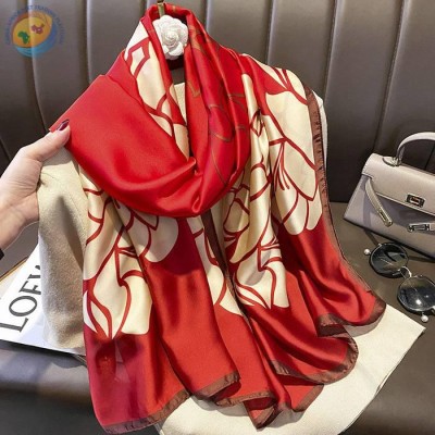 Spring and summer new temperament printed imitation silk scarf scarf to wear