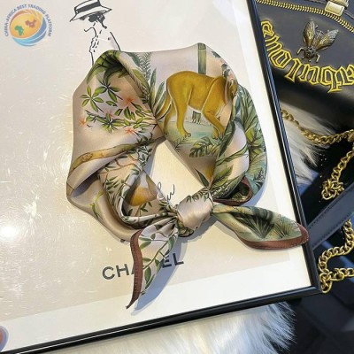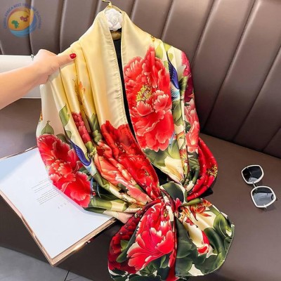 春夏印花款花朵围巾披肩仿真丝洋气气质丝巾
